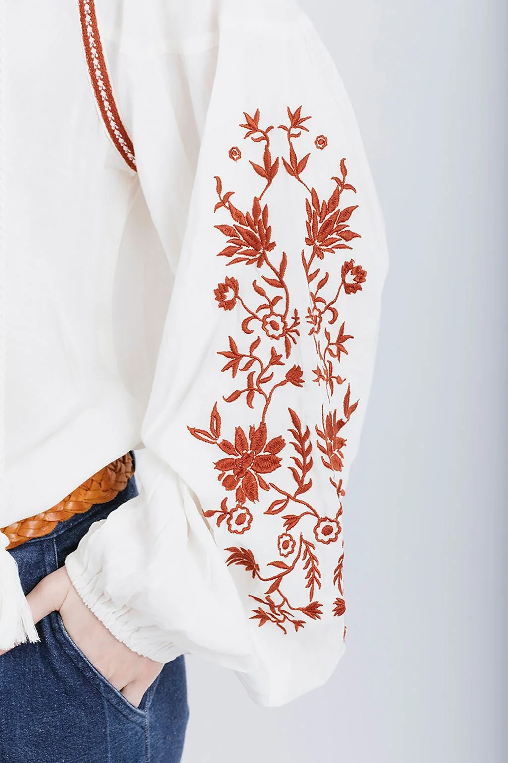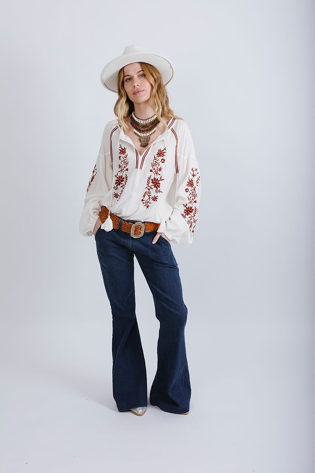With all her vintage-inspired embroidery details to fall in love with, this blouse is a delicate yet wearable style with incredible stitching detailing, takes a nostalgic trip down memory lane. Our blouse has billowing raglan poet sleeves, a v neckline and traditional tie tassels, which are finished with a 70’s stitch detailing, making it a flattering fit for all to wear and style their own. We guarantee this is the perfect everyday blouse for all the 70’s boho blouse lovers.